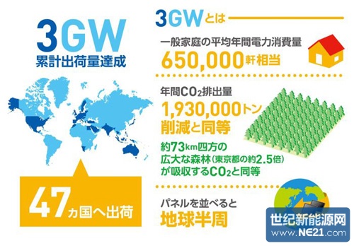 Solar Frontier于2015年7月23日宣布,该公司的“CIS薄膜太阳能电池模块”供货量累计达到了3GW(300万kW),最大输出功率相当于3座典型的原子能发电装置(核电)。该公司称设想的年发电量约为3679GWh,相当于约0.6座核电。