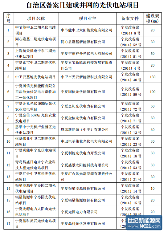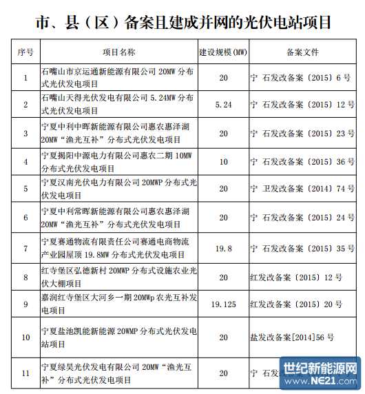 2016年12月22日前,全区已建成并网但暂未纳入国家光伏年度建设规模管理的光伏电站项目,具体项目名单详见附件1。