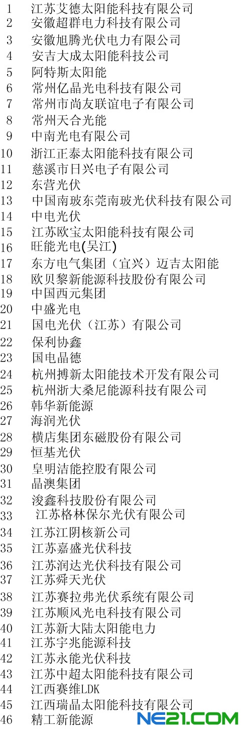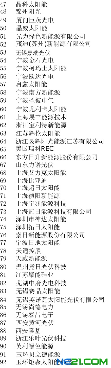 以下112家中国企业被选入抽样调查名单:欧洲反补贴光伏企业抽样调查名单(如需文字版本,请与swy@ne21.com 或0431-89906520联系)