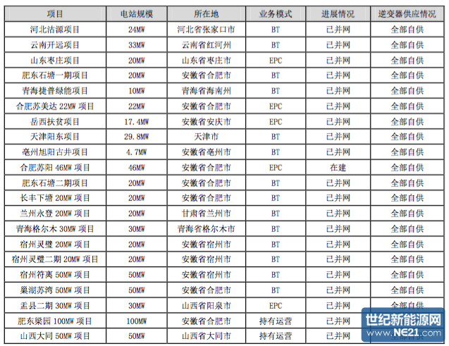 光伏电站系统集成业务的项目情况