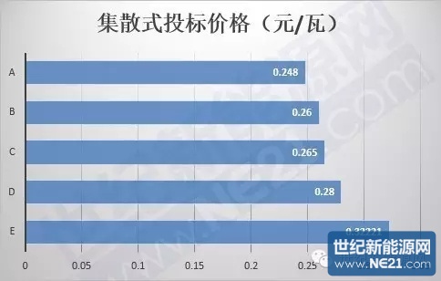 组串式逆变器共计5个厂家参与投标,最低0.248元/W,最高0.32221元/W。平均价格0.275元/W。