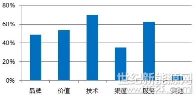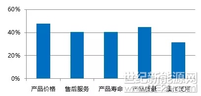 受访者认为光伏企业未来竞争焦点前三是技术、服务、价格。服务在光伏企业竞争中越来越重要,用户体验是第一位,降成本不能降服务。