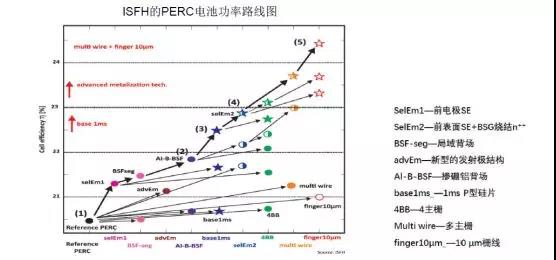 回顾2017,隆基乐叶与晶科先后四次打破光伏行业世界纪录。 2018年1月18日,第三方认证测试机构TüV南德(TüV-SüD)测试宣布,隆基乐叶60型高效PERC组件光电转换效率达到20.41%,创造了新的单晶PERC组件转换效率世界纪录。此次会上,据王梦松先生介绍,常规单晶电池转换效率在20%左右,而叠加了PERC技术后,行业目前单晶电池转换效率可提升至21.2%以上,而双面PERC技术则可将综合转换效率进一步提升至23.3%。ISFH的电池组件功率图上可以看出,PERC的转换效率在稳步提升,未来可预期的三年之内,量产的平均效率可以超过23%,研发端效率则接近24%,三到五年之内PERC都会是光伏行业最具性价比的技术解决方案。