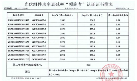 隆基乐叶组件的低衰技术也在业内大幅领先。借助单晶PERC技术与低衰技术,隆基推出了Hi-MO系列产品,RETC实验室测试结果表明,60kWh光衰在0.02~0.45%范围内;此外,Hi-MO2双面组件凭借双玻+POE+边框的组件设计,可提供0.45%/年的功率质保。在国检集团(CTC)海南基地实证项目中,经过2年户外曝晒,隆基乐叶组件第二年的功率衰减率仅为0.32%。