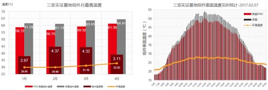 光伏电站中,工作温度和温度系数造成的发电量损失平均可达1%以上,如何最大程度降低温度对组件性能的影响也是业界的一个重要关注点。三亚实证项目同时显示,隆基乐叶PERC单晶组件比多晶组件的平价工作温度可以低3-4oC。