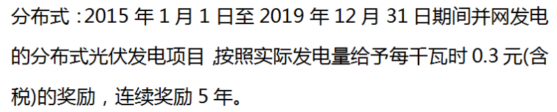 分布式:光伏发电项目所发电量,实行按照电量补贴的政策,补贴标准在国家规定的基础上,省再补贴0.1元/千瓦时。
