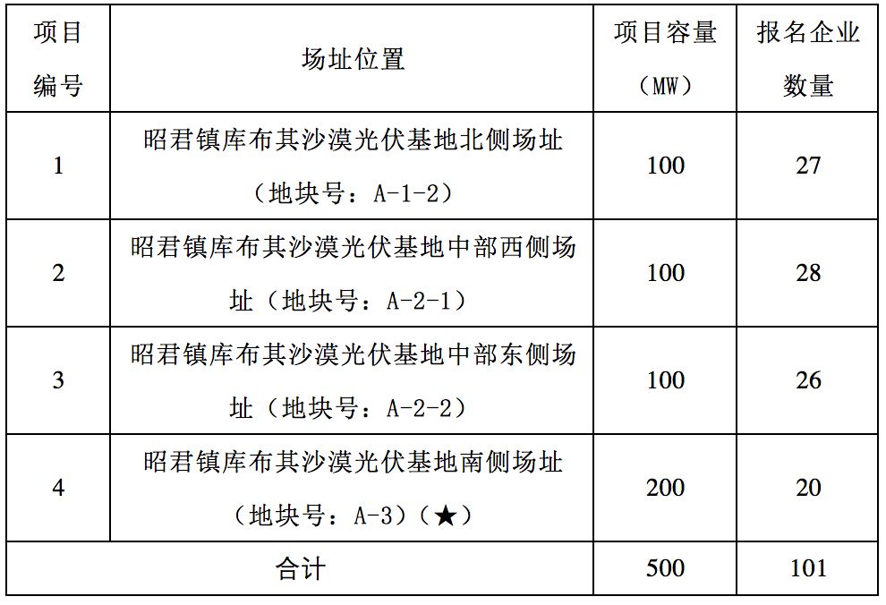 根据《达拉特光伏发电应用领跑基地2017年竞争优选公告》,截止至2018年2月15日,共接收30家企业报名,各项目报名企业数量见下表。