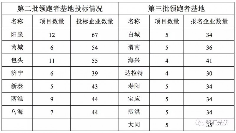 第三批领跑者中一个重大变化是:一个企业(联合体)可投某基地中的多个项目,而之前,一个企业只能中标某基地中的1个项目,不可能是2个或以上。因此,今年出现大量企业,某基地的全部项目,即在理想情况下可以拿到全部500MW的项目。因此,企业在投标过程中更多的选择自己青睐的、有优势的基地进行投标。
