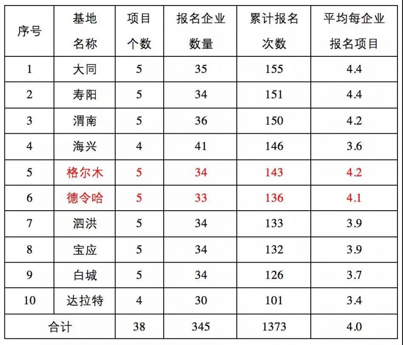 根据之前的统计,很多企业几乎报名了一个基地的所有项目,如下表所示。