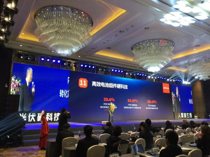 “隆基股份坚持以科技为企业立足之本,持续进行技术创新,在每年销售收入呈倍数增长时,科研投入比例始终不低于销售收入的5%。历经十八年精耕细作,隆基股份在单晶硅片的降本及品质提升、电池组件高效化的道路上取得了重要突破。我们相信,技术将会改变光伏,也将改变人类的生活,愿我们携手同心,用硬科技推进能源生产和消费革命,为构建清洁低碳的能源体系和人类生活而不断努力!”李振国先生在大会上说道。