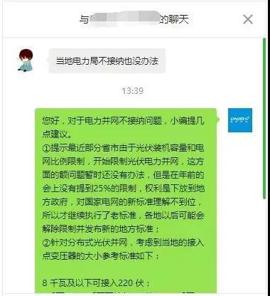 投诉让我想到了前两天早上看到有用户在后台留言,提到不能并网的问题: