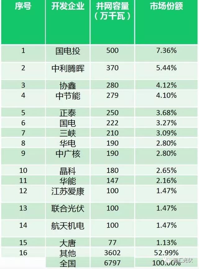 注:2016年光伏开发企业的排名用的是水利总院一些数据,跟各家已经上市的光伏资产持有公司的公报有一定的出入