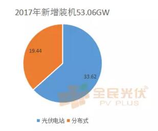2017年新增装机53.06GW,分布式19.44GW,占36.64%