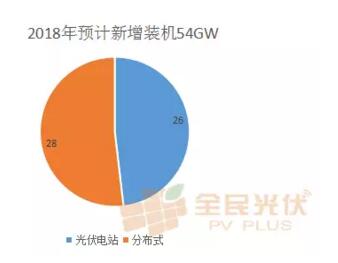2018年预计新增装机54GW,分布式28GW,占51.85%