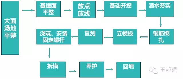 按施工方式可分为:预制水泥基础和直接浇筑基础。