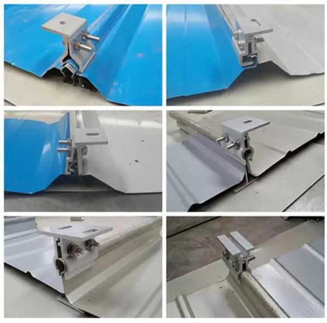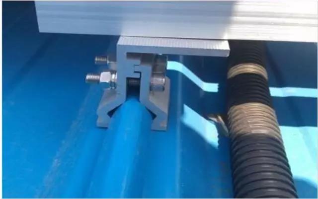 彩钢瓦没有基础,一般采用夹具固定在彩钢瓦的瓦楞上。