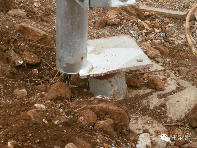 成孔方便,可以根据地形调整基础顶面标高,方便调节上部支架,可随地势调节支架高度;
