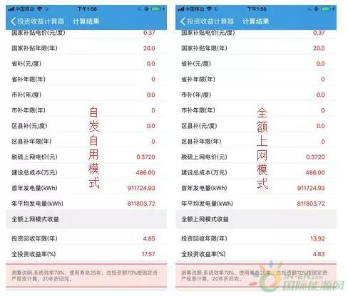 投资收益率及上网模式分析,以唐山市路南区为例: