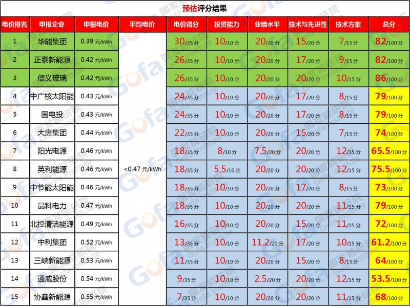从项目3预估评分结果来看,信义玻璃具有比较大的分数优势,华能集团在电价上的优势在技术先进性和技术方案评判中抵消。