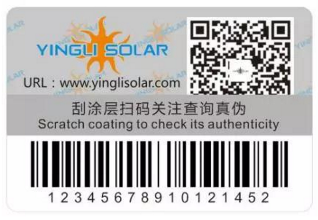 步骤一:刮开组件防伪标签涂层,找到16位防伪码和完整的英利官方售后公众号二维码;