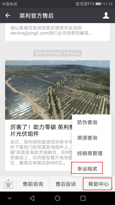 温馨提醒: 2018年2月份开始生产的贴有防伪标签的英利正品组件均有机会参与抽奖噢~~