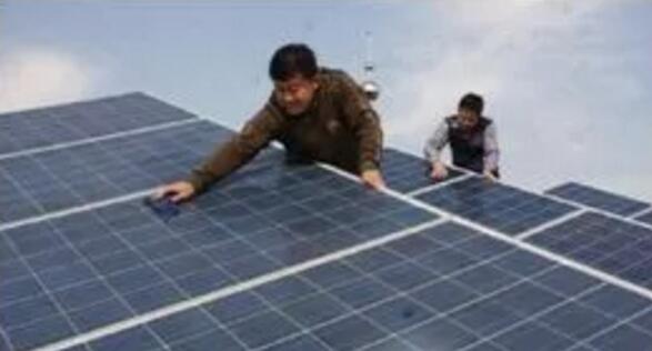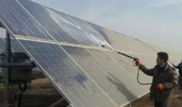 在清晨或者傍晚用清水冲洗光伏组件,然后用拖把清除表面水渍跟积水。