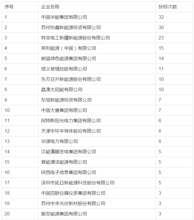 华能、协鑫、特变电工分别投标32、30、23次,尤其是华能以0.39元/kWh、特变电工以0.32元/kWh引起业内哗然,结果却一个项目未中,成为第三批领跑者最失落的企业。