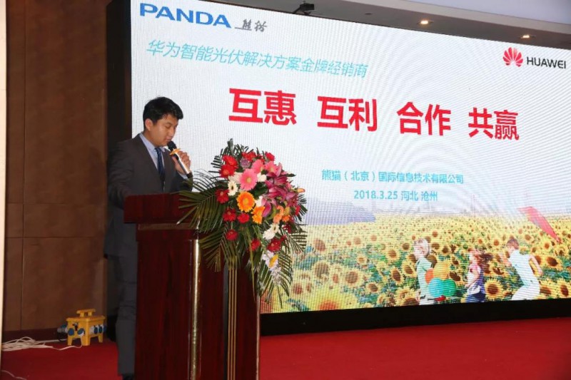 熊猫(北京)国际信息技术有限公司华北区销售总监李增旺表示:“熊猫国际是华为智能光伏的总经销商之一,一直以来,熊猫国际坚持华为理念,以客户为中心,基于客户需求不断提升服务水平,赢得了华为、客户的充分信任,目前公司光伏业务已经覆盖全国95%以上的省级区域,拥有超过900家客户,华为品质,值得信赖”。