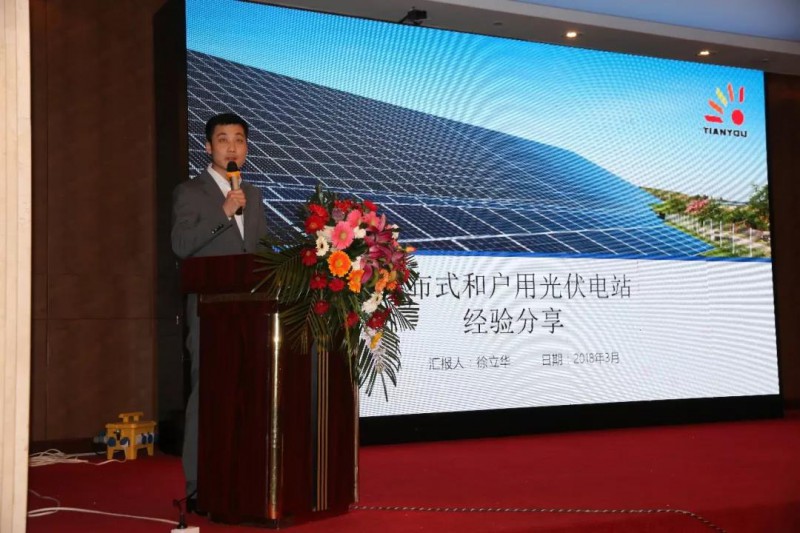 沧州市天佑阳光新能源科技有限公司总经理徐立华详细介绍了分布式和户用光伏电站建设和运维经验,会场观众纷纷拍照,收获颇多。