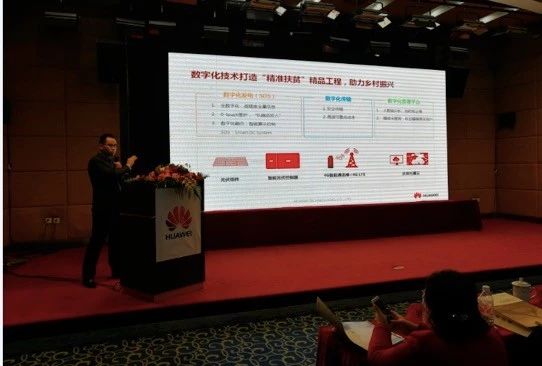 华为智能光伏业务中原区解决方案总监吴透明做了“数字化技术打造精准扶贫精品工程,助力乡村振兴”的主题演讲:华为扶贫解决方案融合先进的数字化技术,大幅降低运维成本。同时系统无易损件、可靠性高,高精度的组串监控还可实时展示各组串的运行状态,无需人员定期巡检;管理系统支持扶贫对象信息录入与查询,发电收益与贫困户信息绑定,收益直接落实到户,真正实现“精准扶贫”。