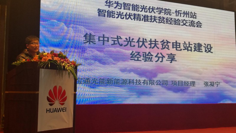 代县宝通光能新能源科技有限公司项目经理张凝宁对集中式光伏扶贫电站建设经验进行了精彩分享,他指出:“降低建设成本、减少不必要的冗余,让系统最简化。逆变器作为连接交直流的核心点,一定要选择可靠品质和长期服务的供应商,华为智能光伏做到了。”