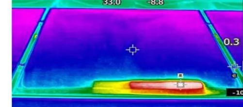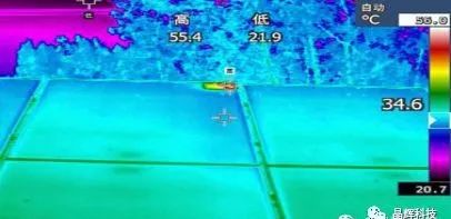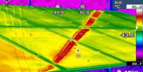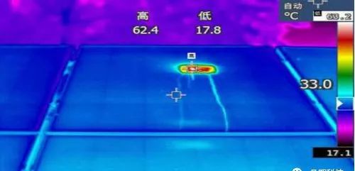 如图1所示,即便是下雪由于将灰尘清洗不干净,时间长了之后被灰尘遮挡的部位就会产生如图2所示的热斑。