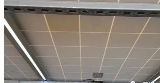 对比图5和图6被遮挡部位可以看出,当组件护角未拆除,长期运行后就会在被遮挡部位产生局部过热或热斑现象。为避免此因素降低光伏组件性能,这就要求施工项目部在施工前做好技术交底工作,施工过程中加强对工程质量的抽查力度,只有这样才能防止此种情况对组件寿命产生影响。