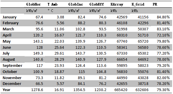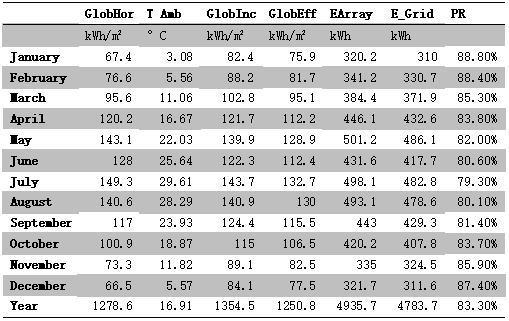 根据PVsyst模拟得到,户用平屋面系统的首年发电系统效率为83.3%。