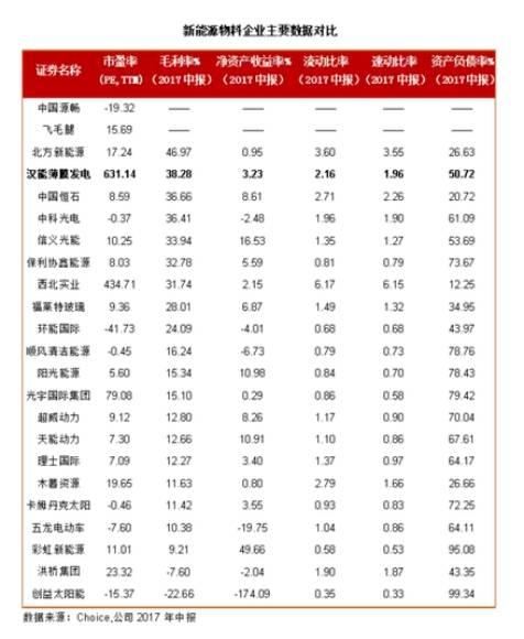 汉能薄膜在港交所行业分类中属于新能源物料行业,在23家新能源物料企业中,公司市盈率较高,主要由于公司业绩未完全释放,也可以一定程度上表明市场对公司经营的认可、对公司未来的期待。值得注意的是,根据2017年新能源物料企业的中报显示,汉能薄膜发电的毛利率居行业第二,高达38.28%,仅次于北方新能源公司。而2017年年报显示,公司毛利率水平进一步提升至43.52%,在已公布2017年年报的新能源物料企业中排名第一。2017年中报显示,公司净资产收益率(平均)为3.23%,在行业中属于中等水平,但是年报显示,2017年的净资产收益率(平均)却有微幅提升,达到3.38%。这些说明公司在行业内具有领先的盈利能力,而且盈利能力还在加强。