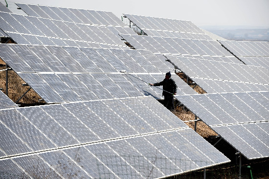 近日,临城县西冷水村村民正维护建在荒山上的光伏扶贫电站。国家级贫困县临城县发挥山场面积大、日照资源丰富的优势,引进晶能、协鑫等光伏企业,以建档立卡贫困村和贫困户为重点实施光伏扶贫,促进贫困村集体经济发展和贫困人口稳定增收。目前,已重点建设了2个集中式光伏扶贫电站、20个村级光伏扶贫电站和163户屋顶太阳能发电系统,3363户贫困户每户年均收益3000元以上。