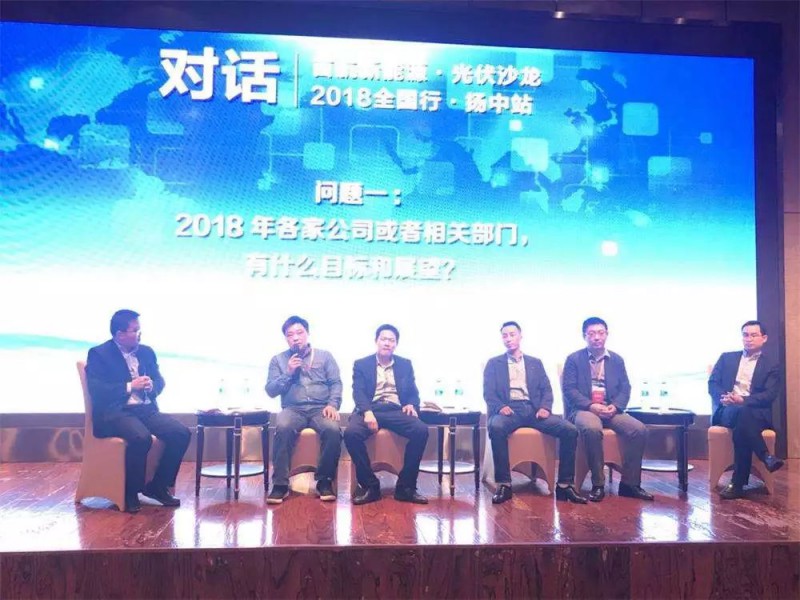 精彩的演讲过后,“新形式下的光伏分布式发展探讨”对话环节隆重上线。首航新能源副总经理孙郑晨、江苏省可再生能源行业协会副秘书长朱俊鹏、无锡英臻科技有限公司总经理王辉、浙江电利宝新能源科技有限公司董事长李煌、中节能太阳能科技(镇江)有限公司分布式项目总监王继东、无锡晶日源科技有限公司副总经理彭辉煌等领导出席对话。