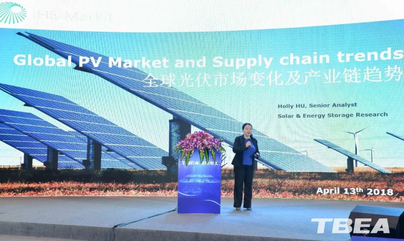 IHS高级分析师胡丹做了关于《全球光伏市场变化以及产业链趋势》的分享,她指出,从领跑者项目的技术类型来看,P型仍然是主流,此外,单晶的份额得到了很大的提升,同时, PERC在所有选型中是优选。总体来说,PERC占了60%左右,剩下的包括叠瓦、MWT技术等,这些先进技术都有助于实现光伏更快的平价上网。