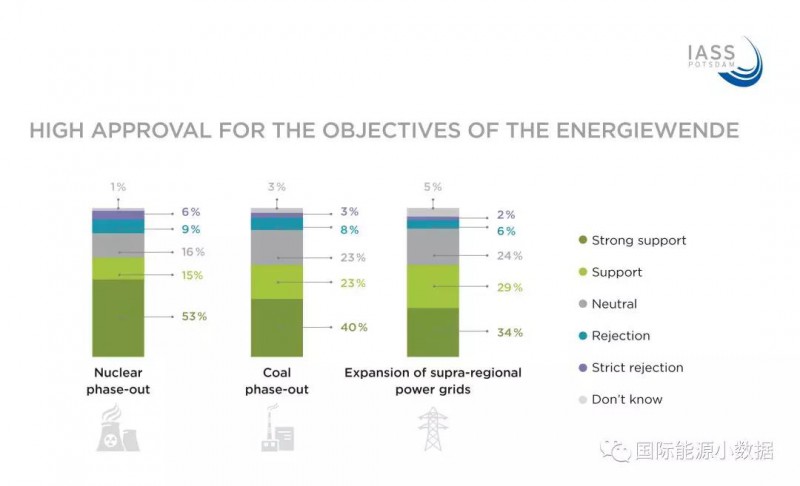 德国the Institute of Advanced Sustainability (IASS)针对能源转型的话题在德国进行民意调查,结果如下——