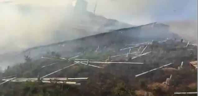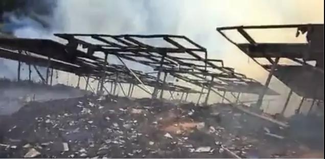视频显示,整个电站一片狼藉,电池组件基本被烧光,只剩下一些凌乱散落的金属支架。