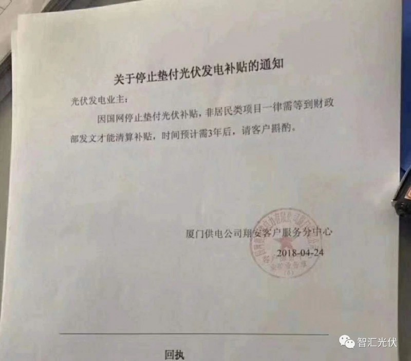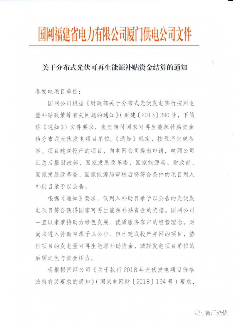 近几日,网上流传着厦门供电公司的《关于分布式可再生能源补贴资金结算的通知》和《关于停止垫付光伏补贴的通知》。