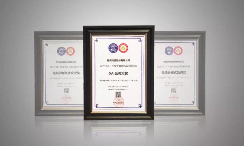 捷报频传,大奖接二连三!4月27日,“2018世纪光伏大会”暨“PVBL2017中国光伏品牌排行榜”颁奖盛典在上海盛大举行。经过行业权威专家严格评选,凭借强大的品牌影响力与卓越的产品品质,阳光电源从众多企业中脱颖而出,继2017年获得“5A品牌大奖”之后,蝉联该奖。