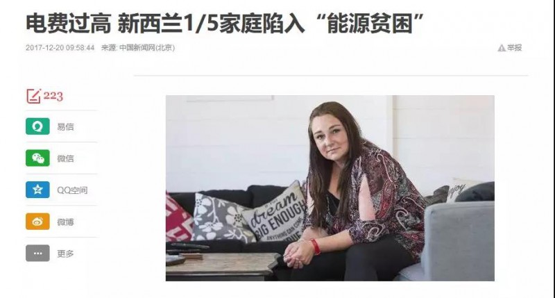 为了证明自己的观点,这位集成商拿出一篇文章,《电费过高 新西兰1/5家庭陷入能源贫困》。果然,没有对比就没有伤害呀!