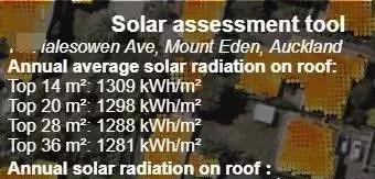 住在新西兰的用户,在地图上找到自己家所在的位置。然后点屋顶,旁边显示一个列表,上面有自家屋顶每年能够接受多少辐射,装完后能可以省多钱。