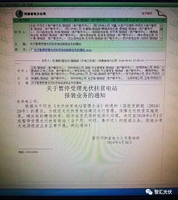 4月30日,河南电力公司发文,要求自2018年5月1日起,暂停受理光伏扶贫电站(含户用、村级、集中式)的报装业务,其他分布式电源业务政策。