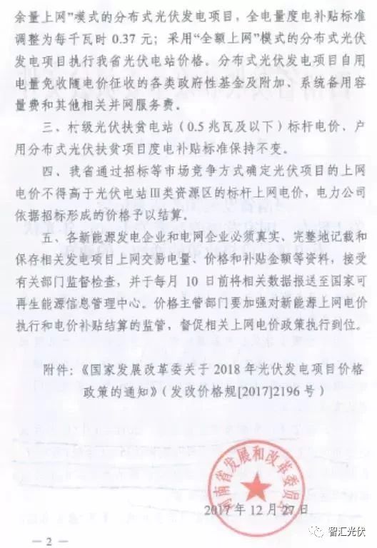 分布式光伏项目:由于不受规模指标影响,因此无论何时备案,只要2018年1月1日之后并网,都执行2018年1月1日的电价。
