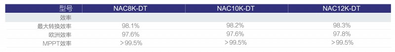 指逆变器允许的最大直流接入组串功率。从参数表上来看,NAC12K-DT这款逆变器,可允许组件接入最大14kW (注意组件接入总电压和电流须在逆变器直流输入电压和电流范围内)。