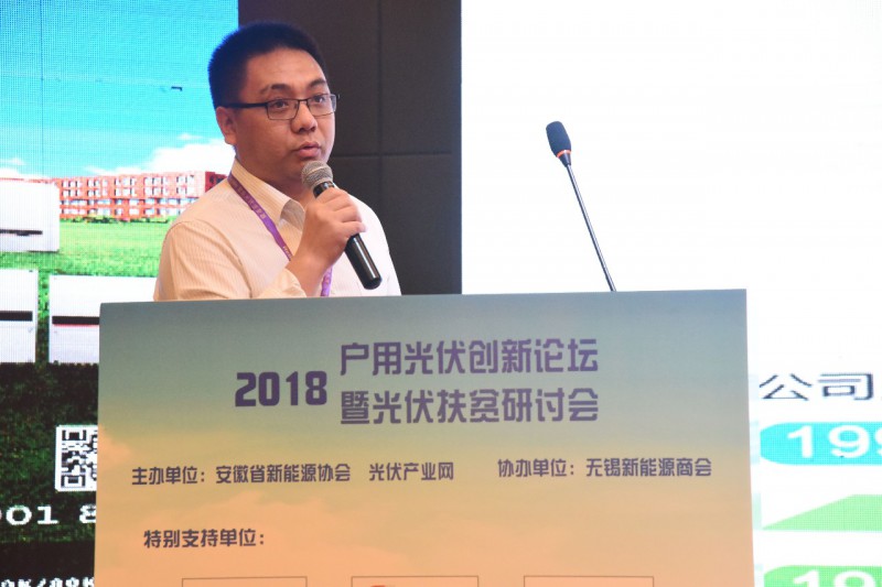 会上,科士达综合解决方案总监李鸽先生做了《技术创新助力户用及扶贫光伏》的主题演讲,从企业介绍、户用及扶贫光伏面临的挑战、科士达逆变器的应对与创新、产品业绩等几个方面对科士达进行解读。