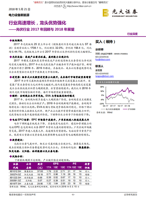 光伏最新报告:光伏行业高速发展 龙头企业优势强化