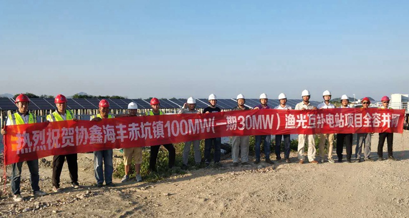 2018年5月22日下午,广东省海丰赤坑一期30MW渔光互补电站全容并网,这是协鑫新能源在广东省第一个实现全容的集中式电站。电站以因地制宜的渔业养殖方案入选海丰县科技创新示范基地,实现光伏与渔业的和谐发展。